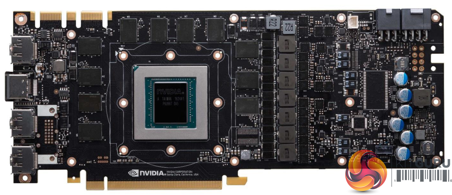 Eleven GDDR5X memory chips comprise the 11GB of VRAM. Nvidia has enhanced the power delivery system compared to the GTX 1080 Founder's Edition. A 7-phase control system drives a total of 14 dual-FETs with a rated power capacity of 250 Amps for the GPU.