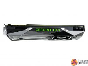 Silver, black, and a hint of green is the go-to style for Nvidia's Founder's Edition cards and the GTX 1080 Ti continues that trend. The side-mounted ‘GEFORCE GTX‘ logo is coloured green and features an LED that can be controlled via software, though not with particularly advanced functionality or RGB options.
