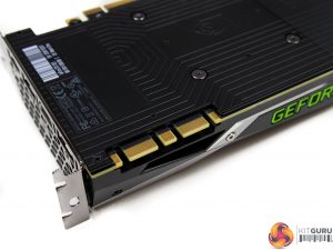 A pair of gold fingers provide SLI support for the GTX 1080 Ti. If you have deep pockets and high graphical demands in your games, coupling together a pair of GTX 1080 Ti graphics card will require the use of a high-bandwidth SLI bridge for the highest level of performance.