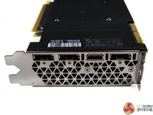 Here comes one of the biggest changes for Nvidia's GTX 1080 Ti graphics card – the rear IO. Nvidia opts for a combination of triple DisplayPort 1.4-ready connections and an HDMI 2.0b output. The DVI port has been dropped, meaning that you'll have to rely upon an HDMI to DVI or DisplayPort to DVI (included) adapter. The decision to drop DVI is driven by the real estate it commands on the rear IO backplate and Nvidia's thoughts that the space is better allocated to additional cooling ventilation.