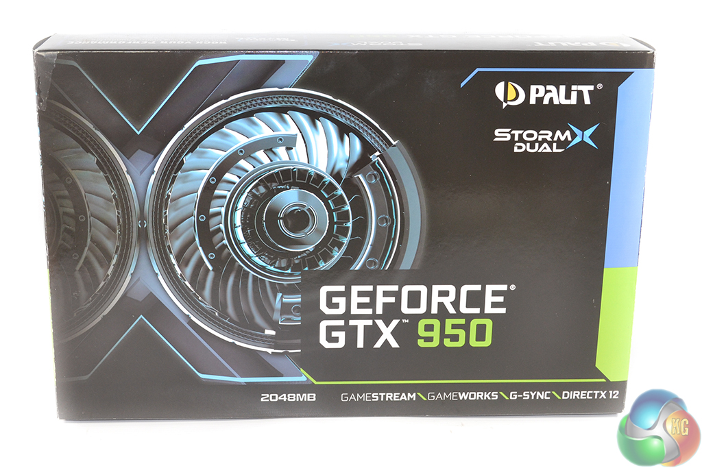 Palit ships its GTX 950 StormX Dual in typical packaging for the company. A drivers CD and manual are supplied.