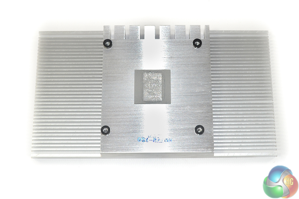 A solid aluminium block and fin array remove heat from the GPU and allow it to be dissipated. The design is clearly optimised towards cost-effectiveness as Palit is relying upon the conductivity of aluminium and the fin array design to spread heat across the cooler, rather than use heatpipes to transfer thermal energy.