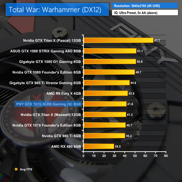 If you like to play Total War: Warhammer, the PNY GTX 1070 XLR8 OC will do a very good job at 1440P and 4K will also be just about playable.