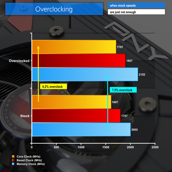 These increases are small but the PNY GTX 1070 XLR8 OC is already overclocked by around 100MHz out of the box.