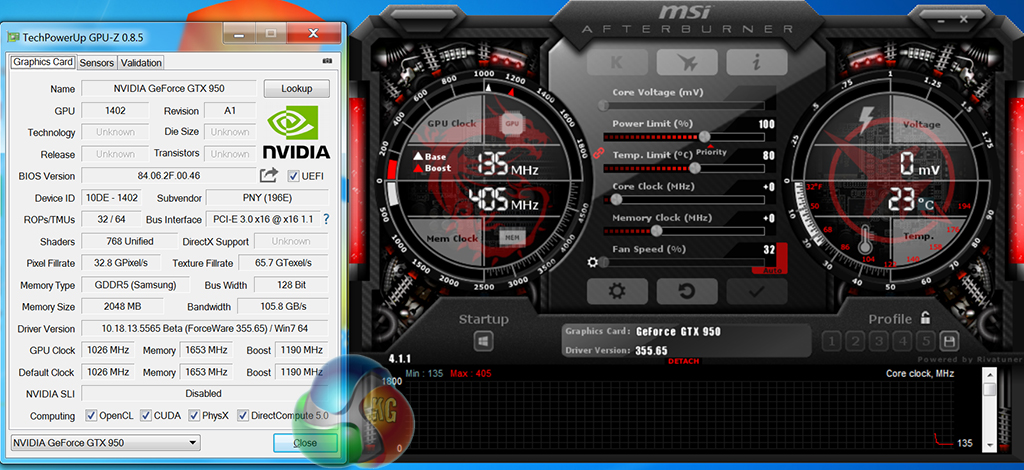 The GPU core runs at 1,026mhz with a boost speed set at 1,190mhz – the reference card speeds are listed as 1,024mhz – so we have a 2mhz overclock on the core? Bizarre. The 2GB of Samsung GDDR5 memory is clocked at 1,653mhz (6.6Gbps effective). These are significantly slower than the Gigabyte Xtreme card which we recently reviewed – this was overclocked to 1,203mhz with a turbo boost set at 1,405mhz.