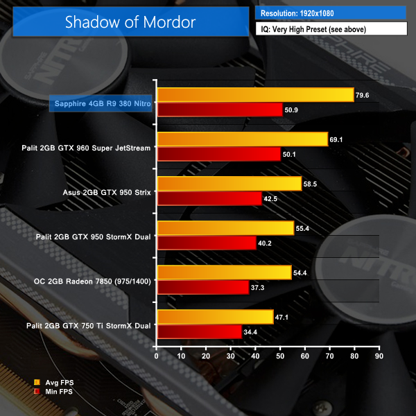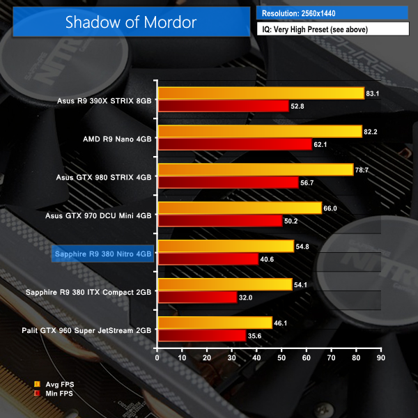 We used Shadow of Mordor's Very High image quality preset for both resolutions and tested using the built-in benchmark.