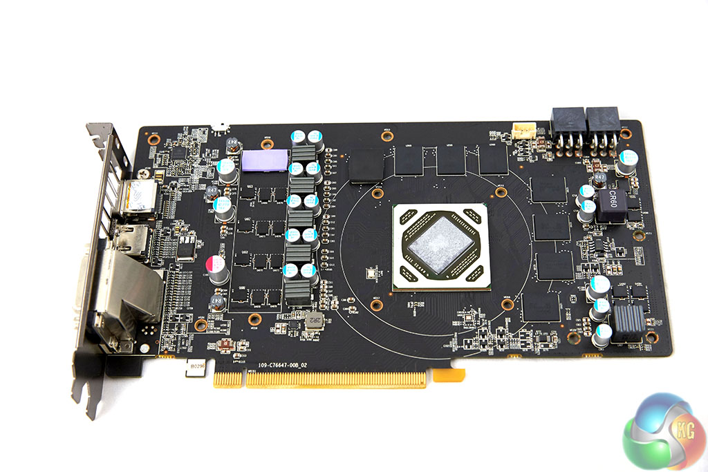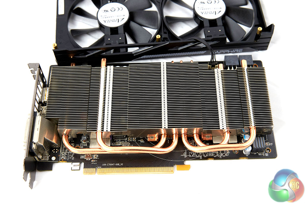 Sapphire's Nitro cooler is very understated which will appeal to the enthusiast audience who have an inherent adverse reaction to flashing lights and bright colours. The PCB is black, to match the matte finish of the cooler.