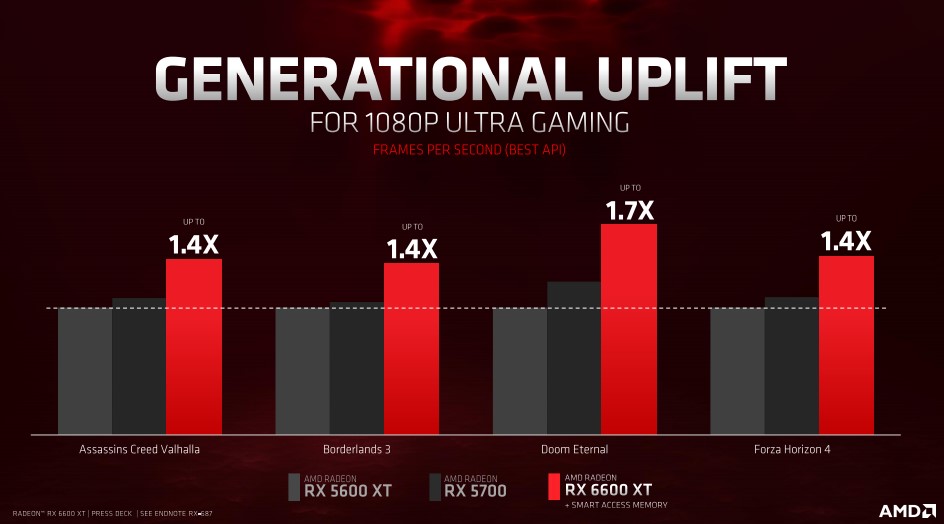 Compared to the RX 5600 XT, AMD's numbers show the RX 6600 XT delivering up to 1.7x more performance. Compared to the newer Nvidia RTX 3060, the RX 6600 XT trades blows in some titles, like Cyberpunk 2077 and Horizon Zero Dawn, but handily wins in other titles, like Hitman 3, Resident Evil Village and Assassin's Creed Valhalla. Do bear in mind these are first-party benchmarks, and we will need to run our own tests as part of our review, but they clearly show AMD taking the RTX 3060 head-on.