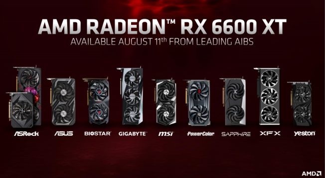 The Radeon RX 6600 XT will be available in gaming PCs from a number of OEMs, including Dell/Alienware, HP and Acer. For DIY builders, board partners like ASRock, ASUS, Biostar, Gigabyte, MSI, PowerColor, Sapphire, XFX and Yeston will be shipping custom-cooled RX 6600 XT graphics cards. Unfortunately, AMD has no plans to sell a reference-design model.