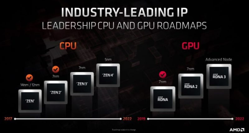 Yesterday during AMD's Financial Analyst Day, the company gave insight into future releases, including new CPUs and GPUs for 2020 and beyond. The roadmaps cover the next two years, with AMD planning more RDNA based graphics cards, as well as Zen 3 and Zen 4 processors.