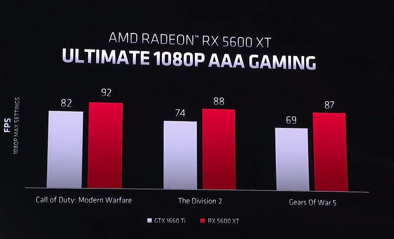 In The Division 2, we see a 88 FPS vs 74 FPS and finally, in Gears of War 5, the GTX 1660Ti scores an average of 69 FPS while the RX 5600 XT is listed as scoring 87 FPS. All tests were done at 1080p with ‘max settings'.