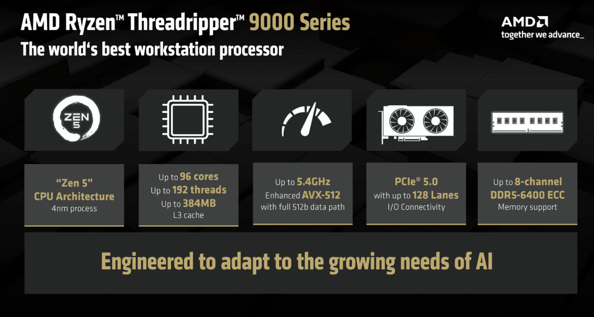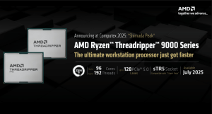 Starting off with CPUs, the new Ryzen Threadripper 9000 series, codenamed ‘Shimada Peak', is launching in July. The new chips use the Zen 5 architecture, offering up to 96 cores and 192 threads.
