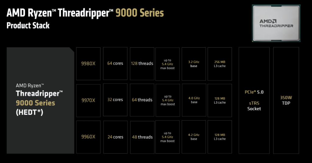In this table we break down the new Threadripper 9000 HEDT processors: