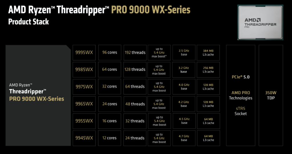 In this table we break down the specs for the Threadripper 9000 WX processors: