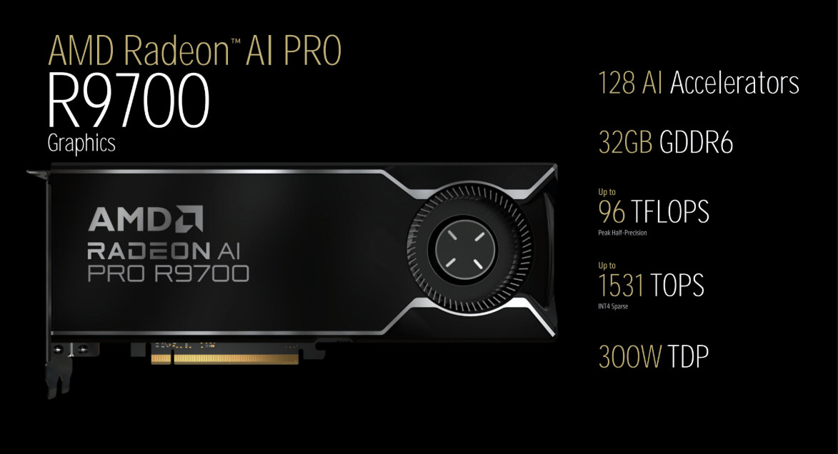 The final graphics card introduced during today's keynote is the AMD Radeon AI PRO R9700. This card will be available starting in July and board partners like Sapphire, XFX, PowerColor, Gigabyte, ASRock, Asus and Yeston are lined up to release versions of it.