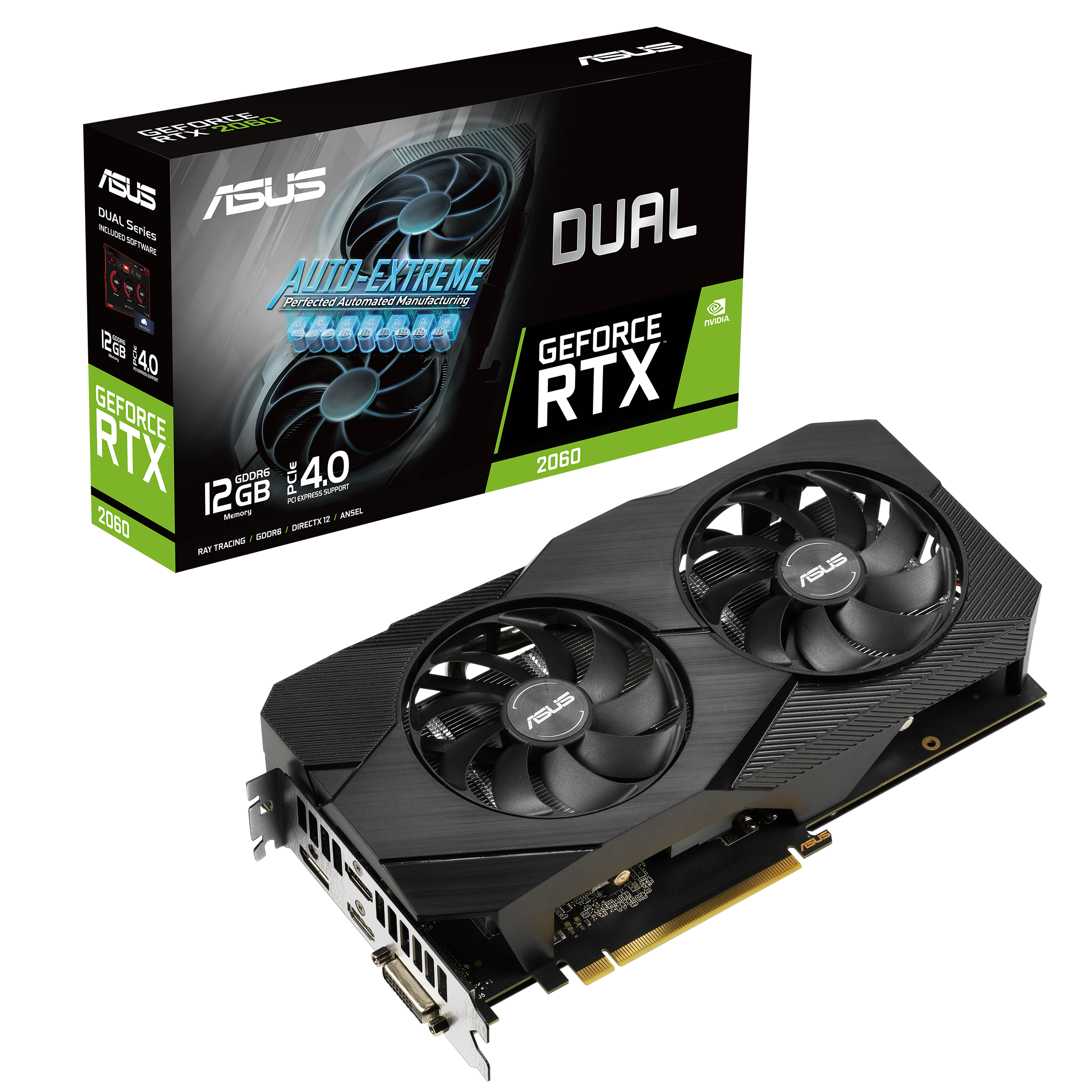 Meanwhile, ASUS is launching an RTX 2060 12GB DUAL with a standard version and an OC version. Both use a 2.7-slot heatsink and dual Axial-tech fans with IP5X dust resistance for cooling. The fans are also set to stop spinning until the GPU reaches 55°C, so it will be silent while idling or doing basic tasks on the PC.