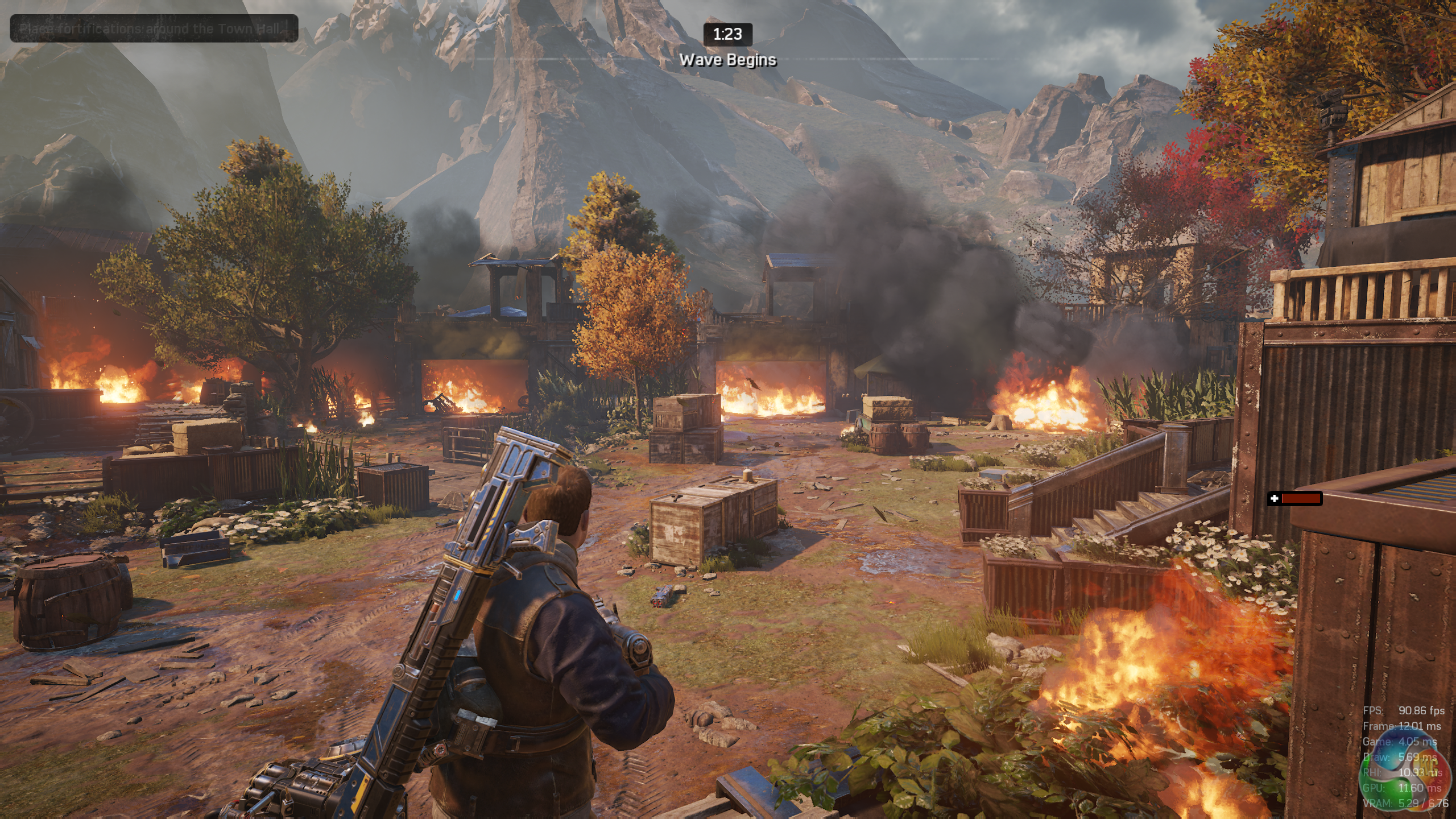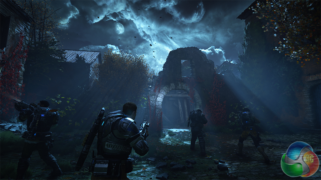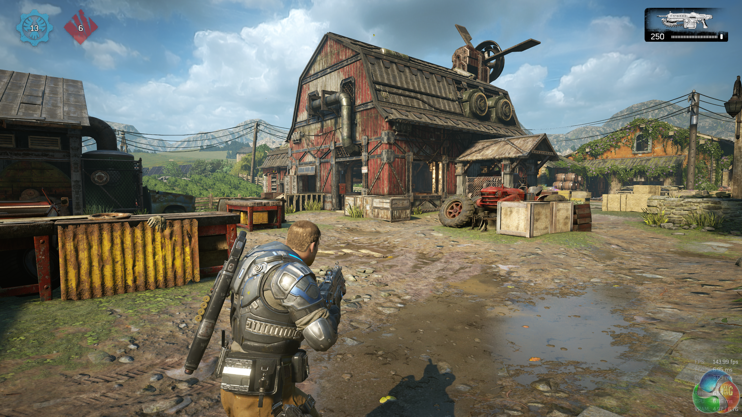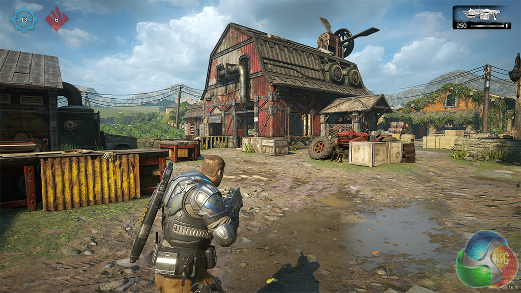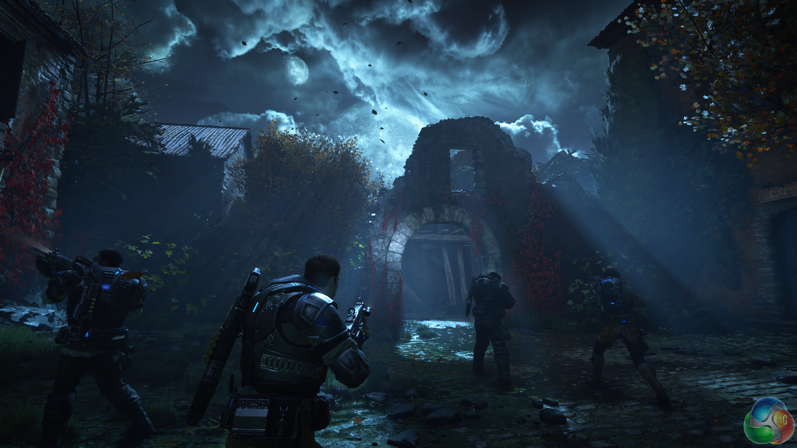 Gears 4 is set many years after the locust war. Civilisation is rebuilding and humans have banded together in individual settlements/villages with the government rationing out resources. This makes for some interesting scenery, with military controlled zones looking rather high-tech and secure, while the main protagonist's village is more basic with amateur buildings but much more grass and trees.