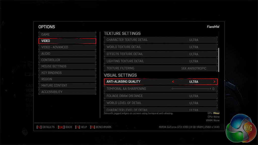 Texture quality adjustments are split up, so rather than having one texture option that affects the entire game, you can pick and choose to have higher textures on characters but lower resolution ones for the world itself or vice versa. Also if you are a stickler for anti-aliasing, you can adjust the sharpening level to make sure no jaggies are ever present.