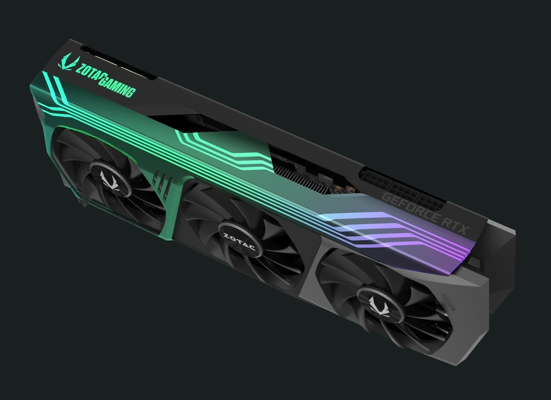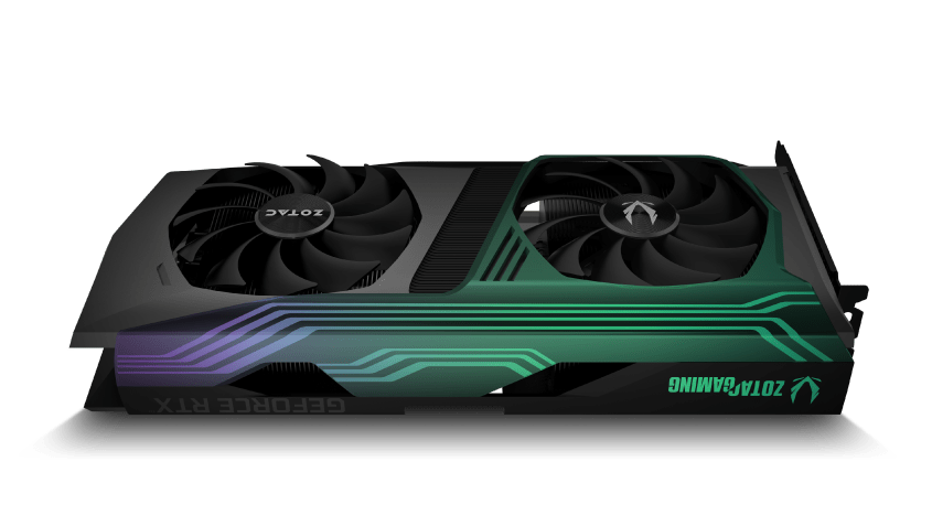 Next up is the ZOTAC GAMING Trinity and Twin Edge cooler designs. As the names imply, the Trinity is a triple-fan cooling solution, while the Twin Edge uses a dual-fan design. Both use “a more refined IceStorm 2.0 cooling system” and an 11-blade fan design to increase airflow by up to 10 percent compared to the previous generation.