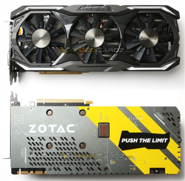 First up we have the GTX 1080 AMP! Series from Zotac, there are two in this range, the AMP! and the AMP! Extreme, both of which feature IceStorm fans with Carbon ‘ExoArmor' and a custom back plate. There is also an LED system to illuminate part of the triple fan cooler. Unfortunately, Videocardz wasn't able to get a hold of any exact specifications, so we don't know what sort of factory overclock we could be getting.