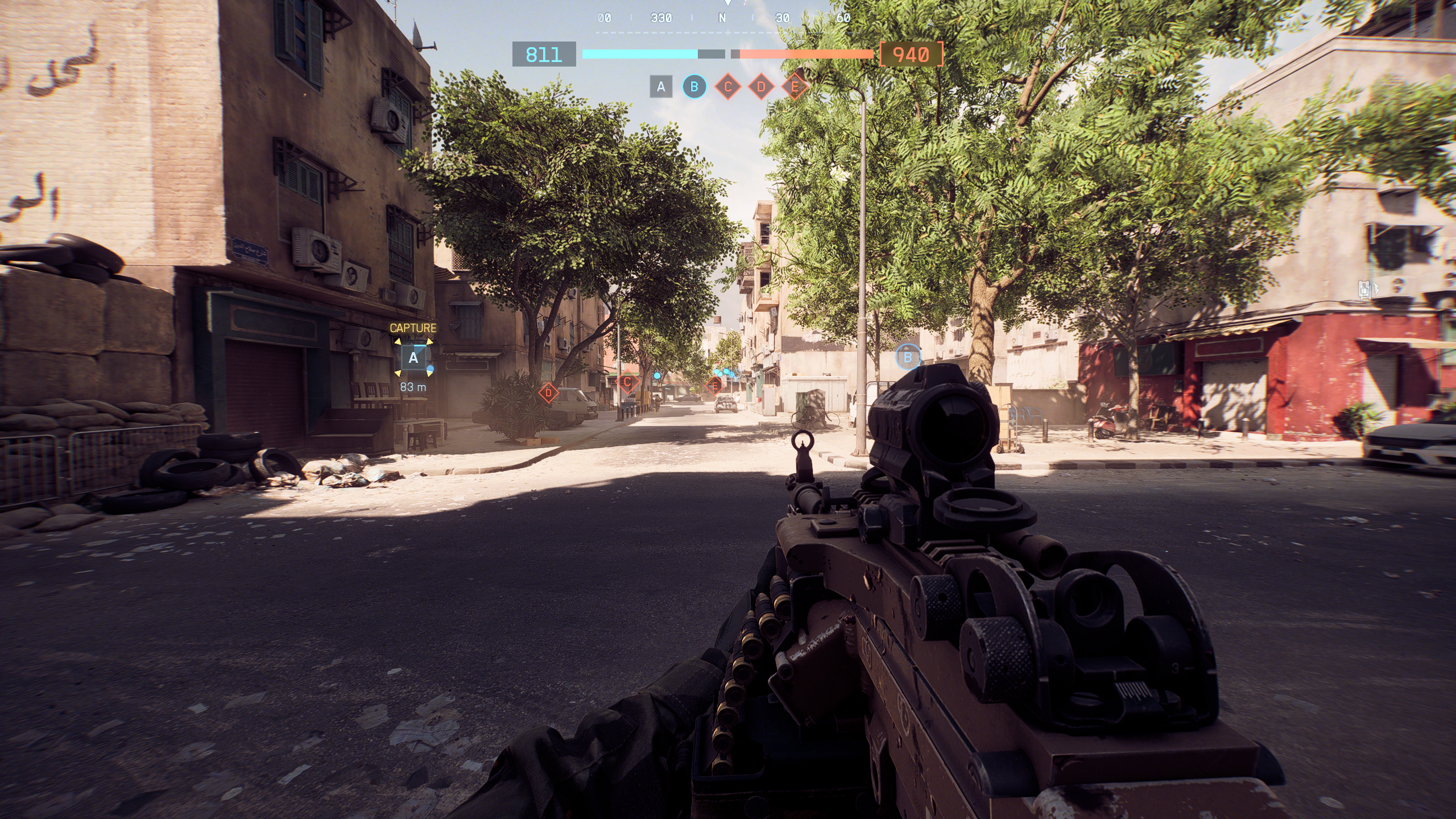 The wide range of destructible buildings also means that the map can meaningfully change over the course of a large-scale game mode like Conquest. Positions that were once well fortified are now a pile of rubble, forcing the action to move elsewhere. If you get caught out in the open, movement tools like the combat roll can help you quickly escape from high points of the map and avoid some incoming fire. If that fails, you can always go prone and hide amongst the rubble. As the Time to Kill here is relatively short (but not COD levels of short), the game encourages players to really use cover and hold advantageous positions.
