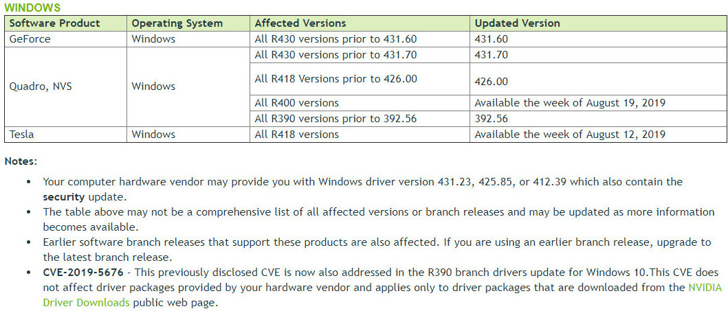 Back in March Nvidia released its first GPU driver security patch of the year, addressing eight vulnerabilities found. Today, the next security update has begun rolling out, addressing an additional five recently discovered security flaws in the Windows drivers for GeForce, Quadro and Tesla graphics cards.