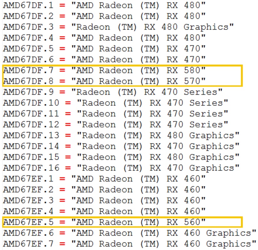 Now, in the latest Crimson Relive 17.3.2 Beta driver, which brings optimisations for Mass Effect Andromeda, there is added support for the RX 580, RX 570 and RX560 GPUs, indicating that these cards are on the way, as noted by previous reports. Aside from that, we can see from the device IDs that the RX 580 and 570 belong to the same device tree as the RX 480 and 470. The same can be said for the RX 460/560, essentially confirming the Polaris refresh.