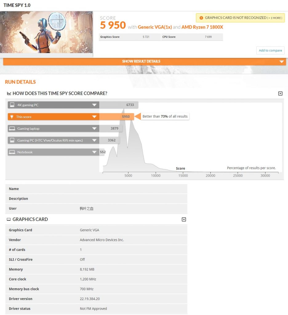 The database entry was originally spotted by Guru3D and in this particular run of TimeSpy, the unnamed AMD GPU managed to score 5721 points. The benchmark was run on a system featuring 16GB of DDR4 RAM at 2128MHz, an ASUS X370-Pro motherboard and a Ryzen 7 1800X processor.