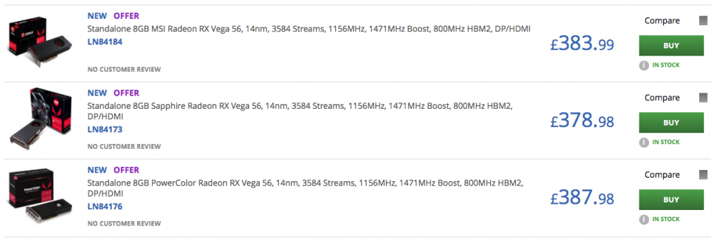 Overclockers UK has also begun listing RX Vega56 with similar prices:
