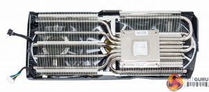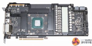 The cooler seems to vary from the unit KitGuru inspected with the ASUS ROG Strix OC GTX 1080 (A8G) back in late-2016. For starters there is a Nickel-Plated contact block, rather than direct contact copper heat pipes, which should lead to slightly increase effectiveness of the heatpipes that do not sit directly above the GPU core.