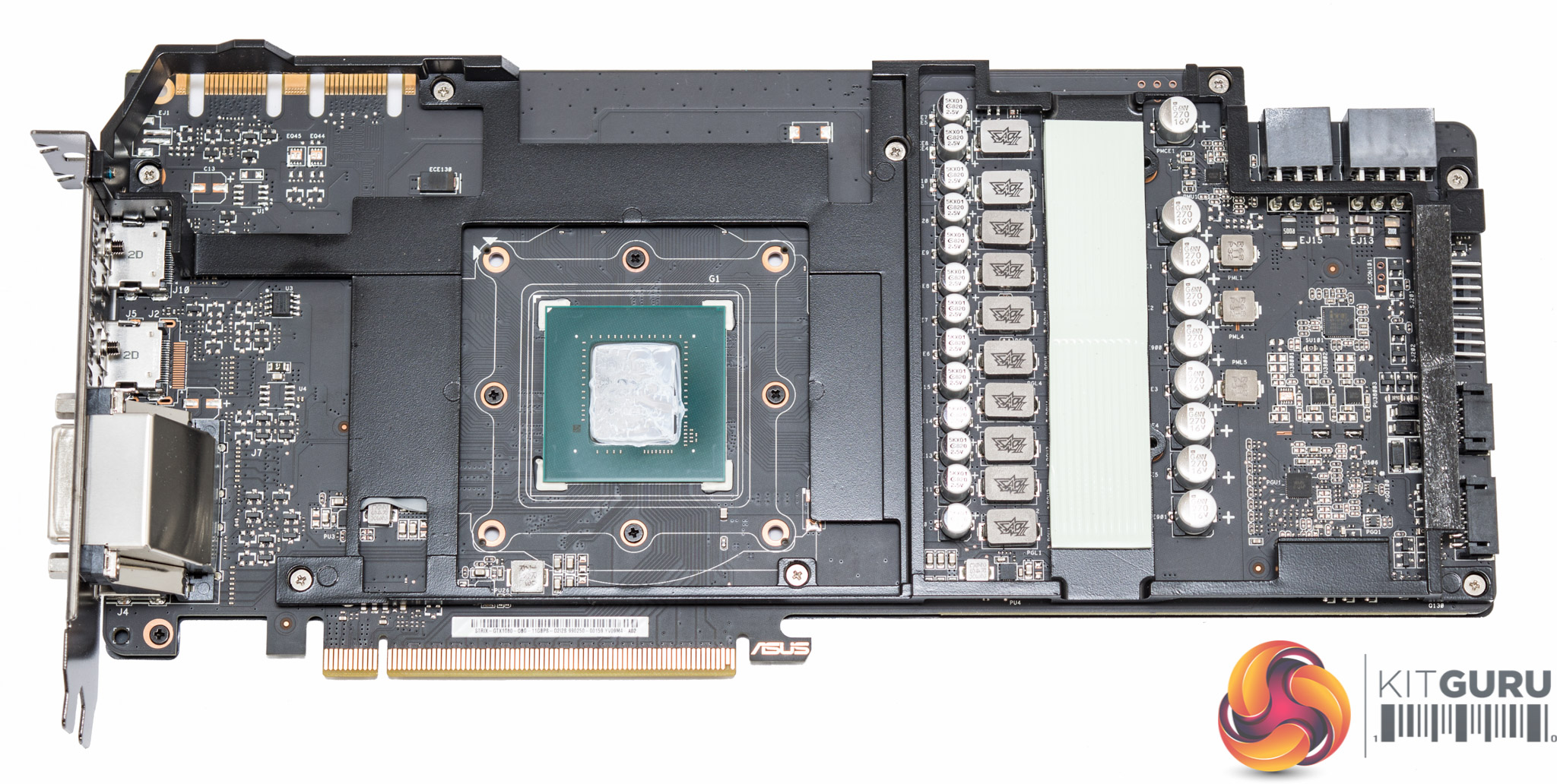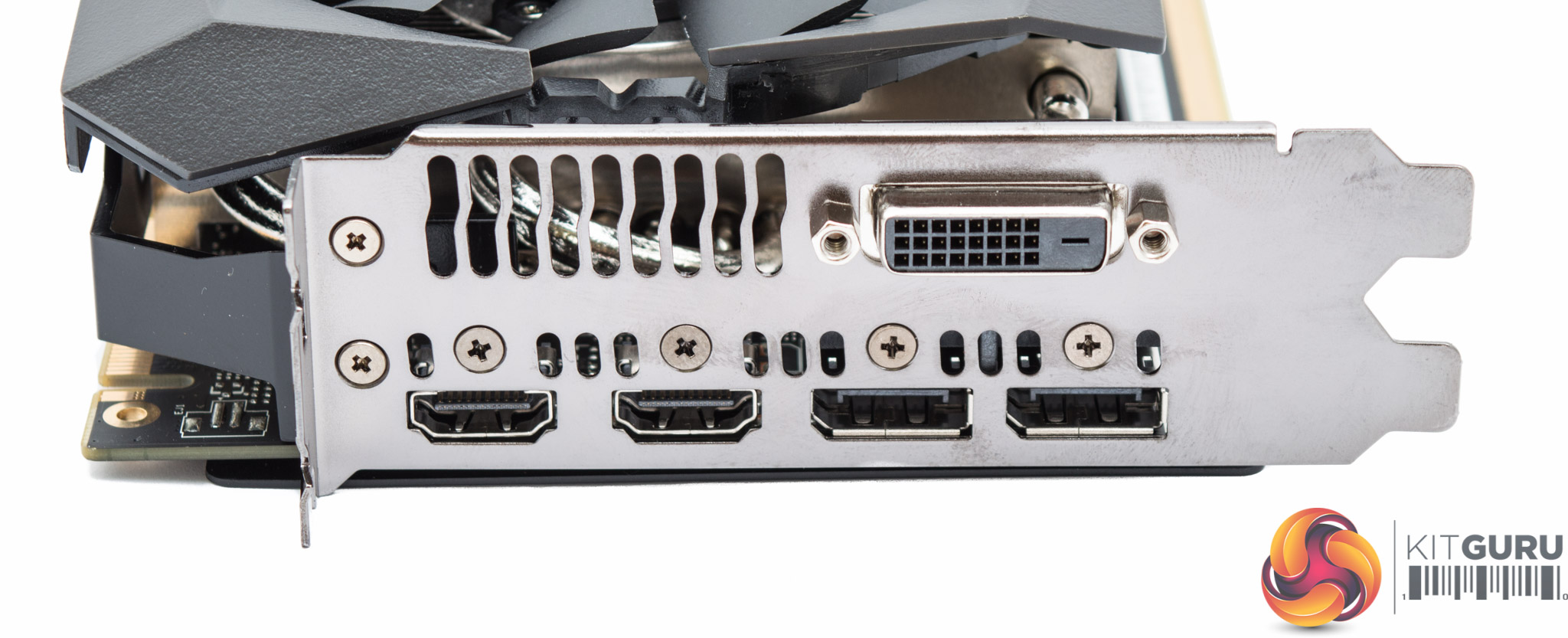 The rear I/O also differs from the reference Nvidia design but ASUS does well to cover all the bases with dual HDMI 2.0 (useful for VR), dual DisplayPort 1.4 and a single DVI-D dual-link.