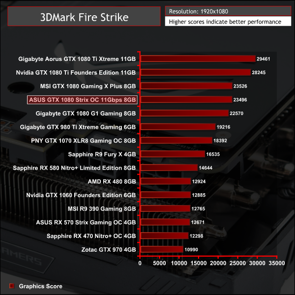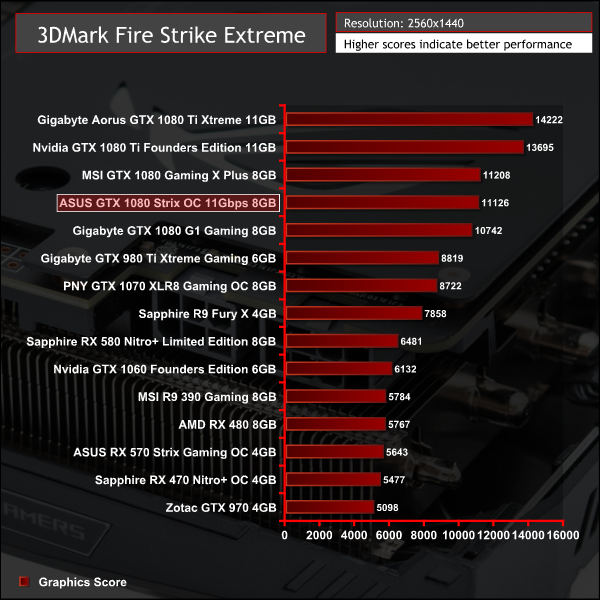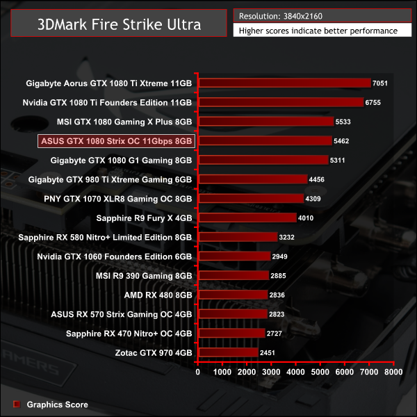 In theory the ASUS ROG STRIX 11Gbps GTX 1080 should be faster than MSI's GTX 1080 Gaming X Plus as it has an extra 12MHz of frequency on the core. However, across a number of benchmarks it fell behind while in others it lead the way.