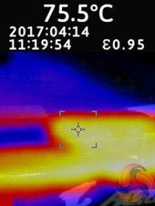 Considering its TDP is in the 250+ watts region, peak hotspot VRM temperatures in the mid 70s is respectable. Most VRMs can operate within specification up to temperatures of 125 degrees Celsius so there are no issues here.