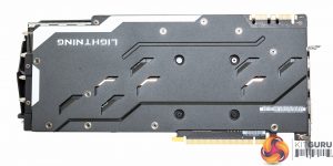 The LED extent almost covers the whole graphics card and is split into two main sections – one on the top and one on the backplate. These are very bright and vibrant and give a great aesthetic appeal that even other “RGB” graphics cards just can't match. Put simply the “light show” is much more impressive than on most of its competitors.