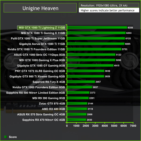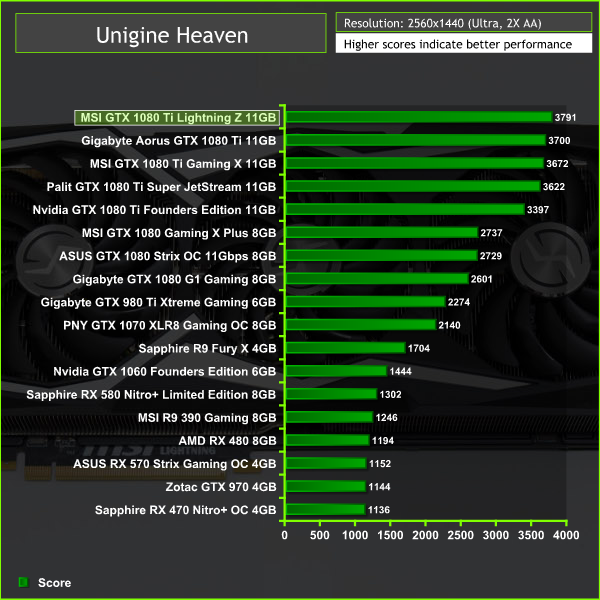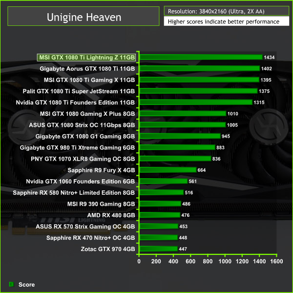 MSI's GTX 1080 Ti Lightning manages to keep ahead of Gigabyte's Aorus GTX 1080 Ti by a smidge.