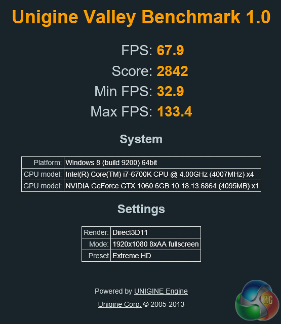 We test Unigine Valley using the Extreme HD Preset, changing the resolution setting only for 1440p.