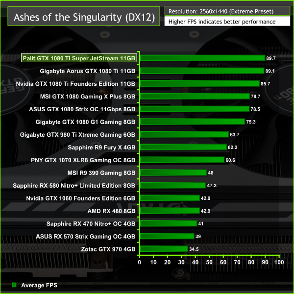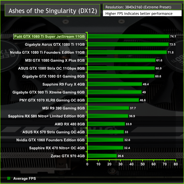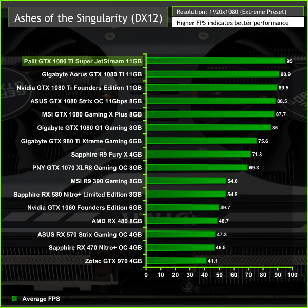 Ashes of the Singularity revealed something of an anomaly whereby the Palit card was quicker across the board, particularly at 1080p. We think this more down to random benchmark variability, or potentially recent updates to the game engine, than anything else.