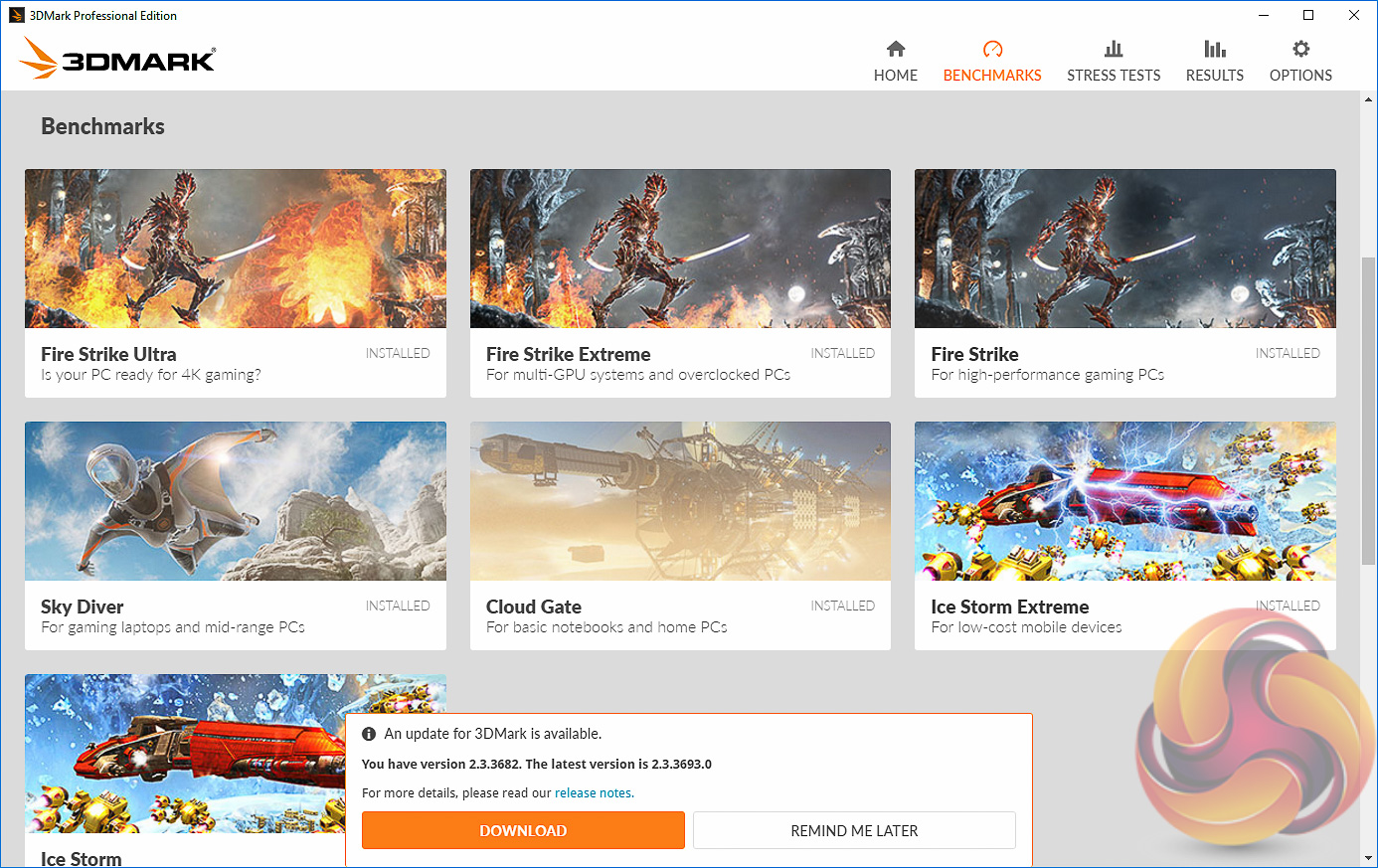 We run 3DMark Fire Strike (1080p), Fire Strike Extreme (1440p) and Fire Strike Ultra (4K).