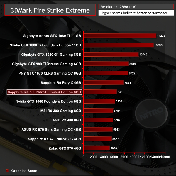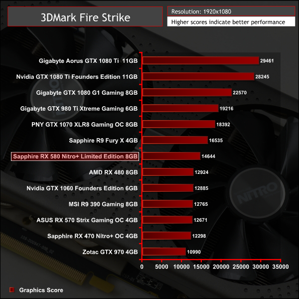 3DMark gives a good summary indicator of gaming performance and here the Sapphire RX 580 scores better than the reference RX 480 and GTX 1060. Overclocked and custom-cooled denominations of the RX 480 and GTX 1060 would undoubtedly narrow or eliminate that gap.
