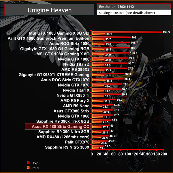 Solid performance from the Asus RX 480 Strix Gaming OC achieving an average frame rate of 49 at these settings.