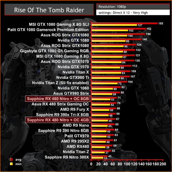 But in DX12 and Vulkan it eats the 1060 alive. The only exception is RotTR which is a (a) NVidia Gameworks title, and