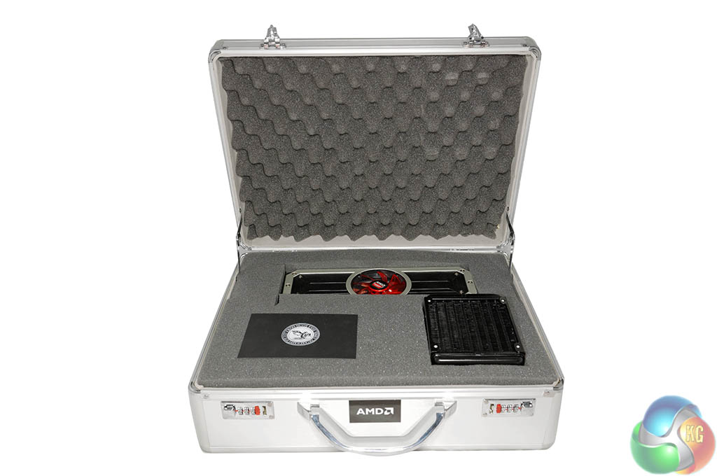 Inside, the graphics card, radiator and hoses are all protected within hand cut, deep foam on all sides. You may think that this flight case is just a presentation idea for launch review websites such as KitGuru, but AMD told us that the end user should be getting the same thing when they buy from their local etailer.