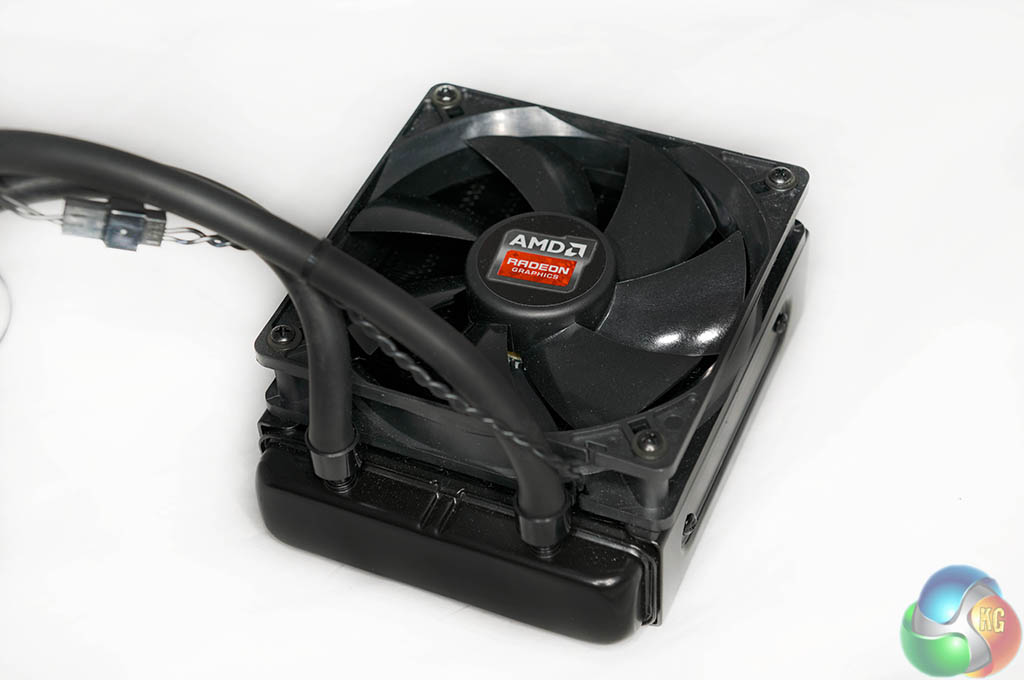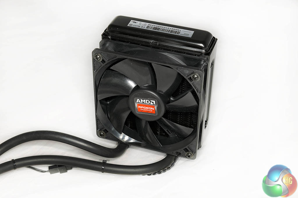 The joint designed Asetek AMD R9 295 X2 liquid cooler features a 120mm radiator, measuring 38mm deep without the fan (64mm with). I have to admit I was slightly surprised to see AMD hadn't installed two fans to help drive more cool air through the radiator in a push-pull configuration. That said, it is quite straightforward to add another fan to the radiator – just check they are working together, not against.