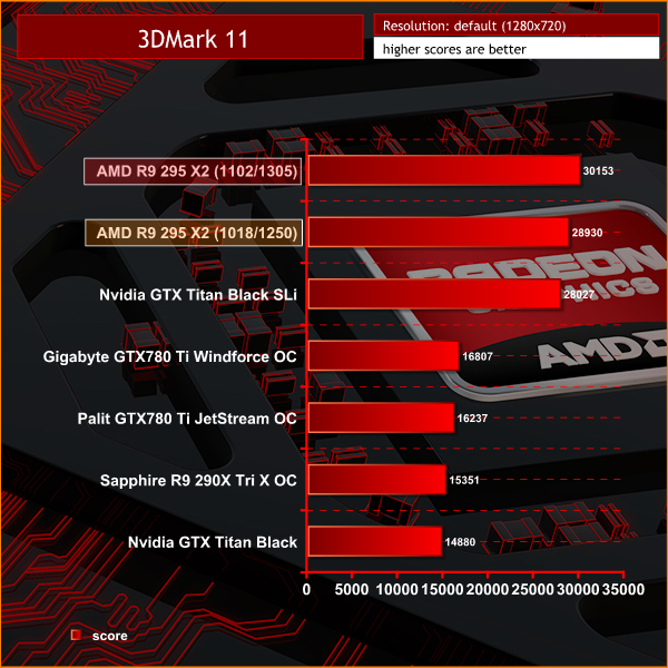 The clock increase gave another 1,223 points in 3DMark 11, taking the final graphics score to 30,153 points.