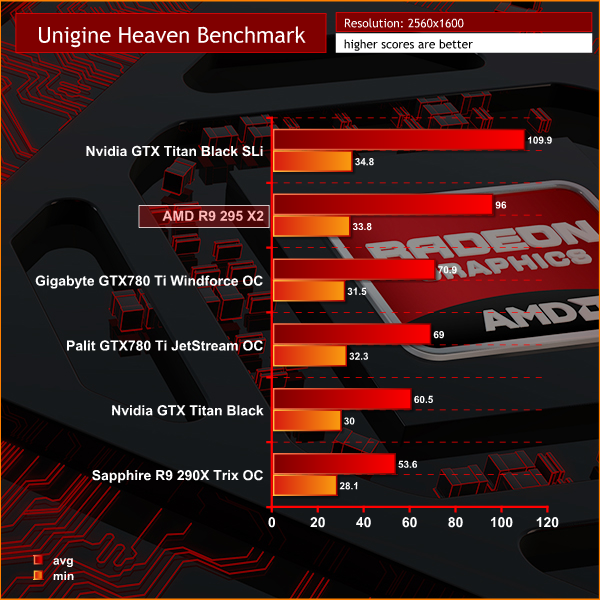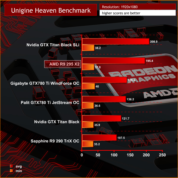 The Nvidia GTX Titan Black in SLi perform better in this benchmark, both at 1080p and 1600p.