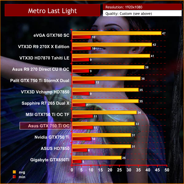 Sure would have like to have a R7 260X represented, while the extra Higher end 270X up taken out just to not complicate things. Your B-M don’t paint that great of picture, largely due to the higher setting. It just isn’t realistic for that grouping of cards to expect advanced setting on 1920x. Would rather see adjusted settings that keep the 1980x average more in the 35-45Fps “playable” range. I mean to drop £131.99 [$180 USD] and only get entry level seem unimpressive, sure the power is low but IDK.