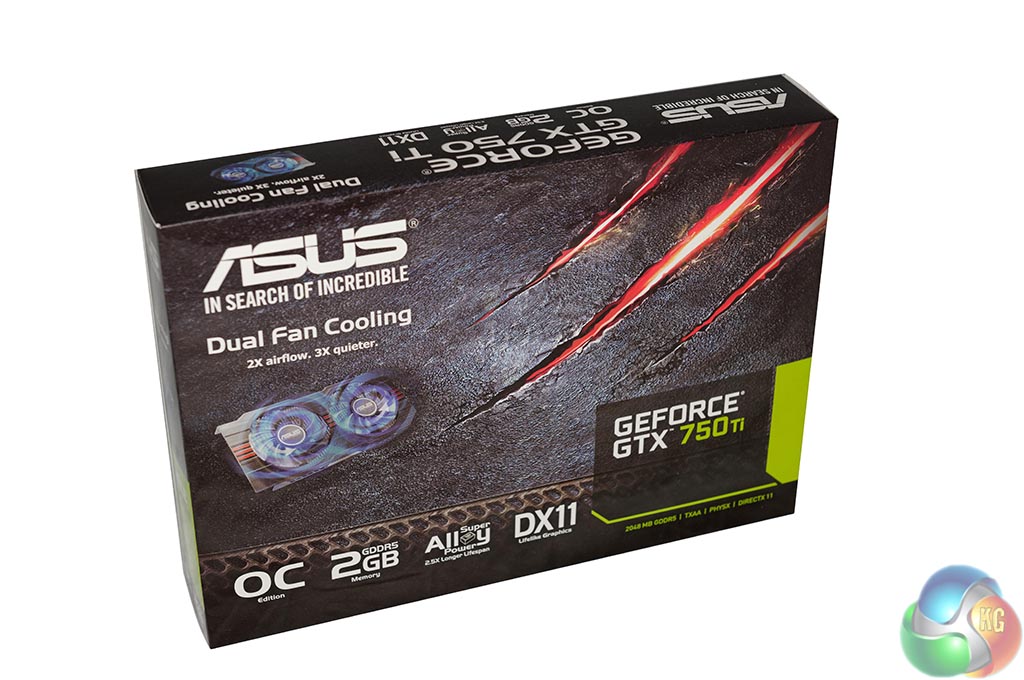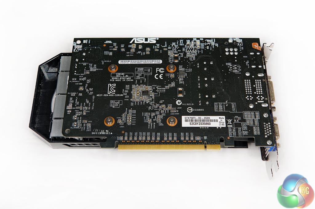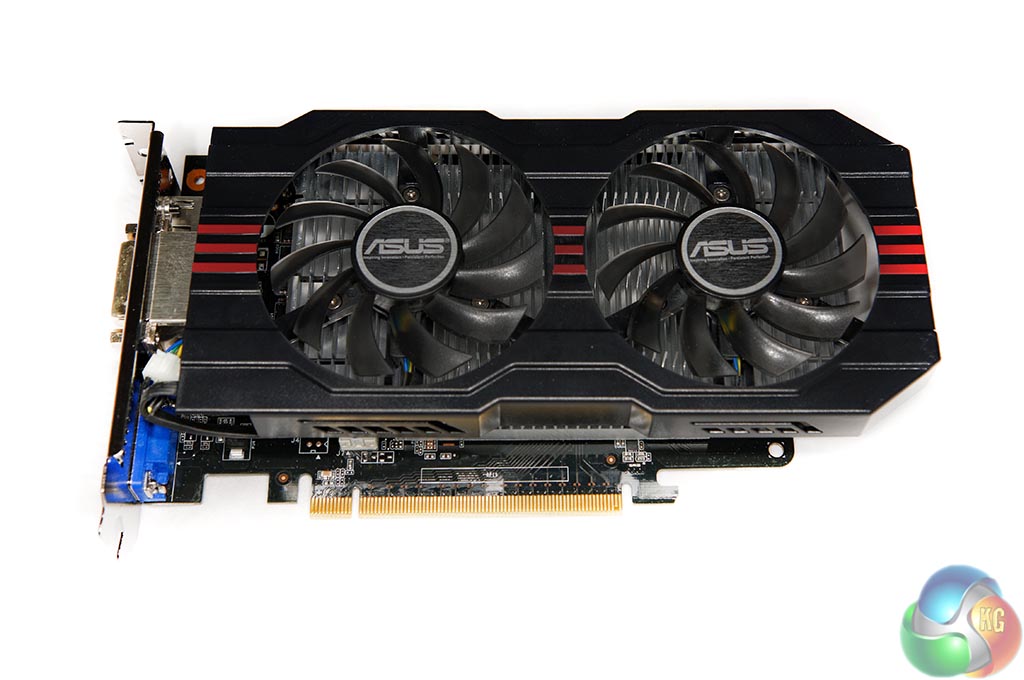 The Asus GTX 750 Ti 2GB is built around a black PCB. The cooler comprises two large fans which span the full length of the PCB.