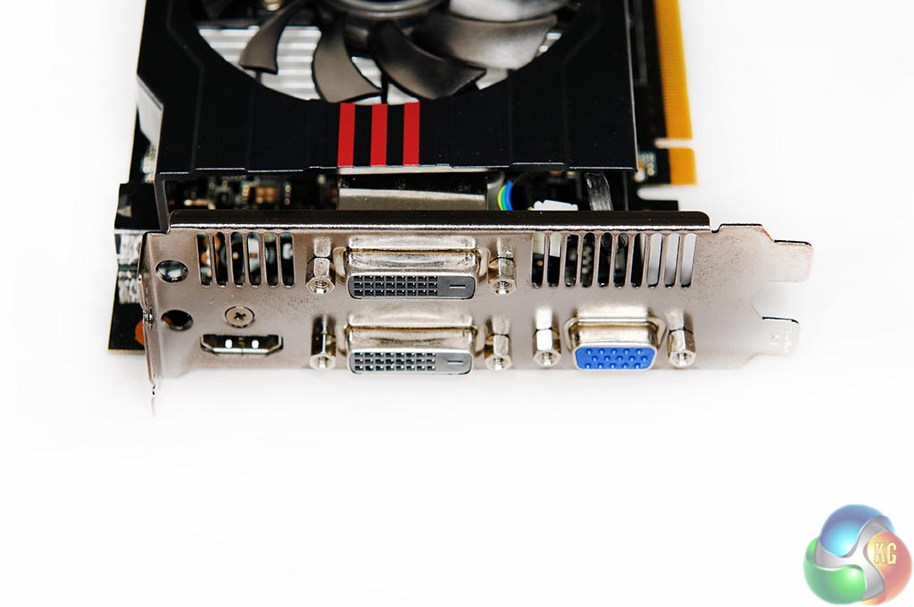 This is the first GTX750 Ti we have tested which ships with two DVI ports on the I/O plate. The MSI and Palit cards have only been equipped with a single DVI port. Alongside these is a VGA connector, and a HDMI connector.