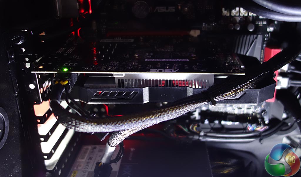 This is also the only GTX 750 Ti solution we have tested that requires a 6 pin PCI e power connector for operation – all other cards get enough power from the slot. For some bizarre reason ASUS have positioned this PCIe connector right beside the I/O panel on the opposite end of the PCB.