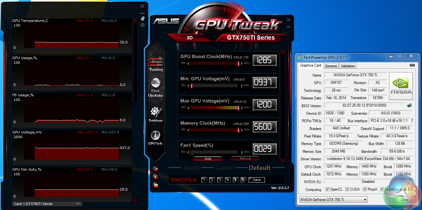 Asus supply a new version of their GPU Tweak on the software disc bundled in the box. We installed this to test how far we could push it.